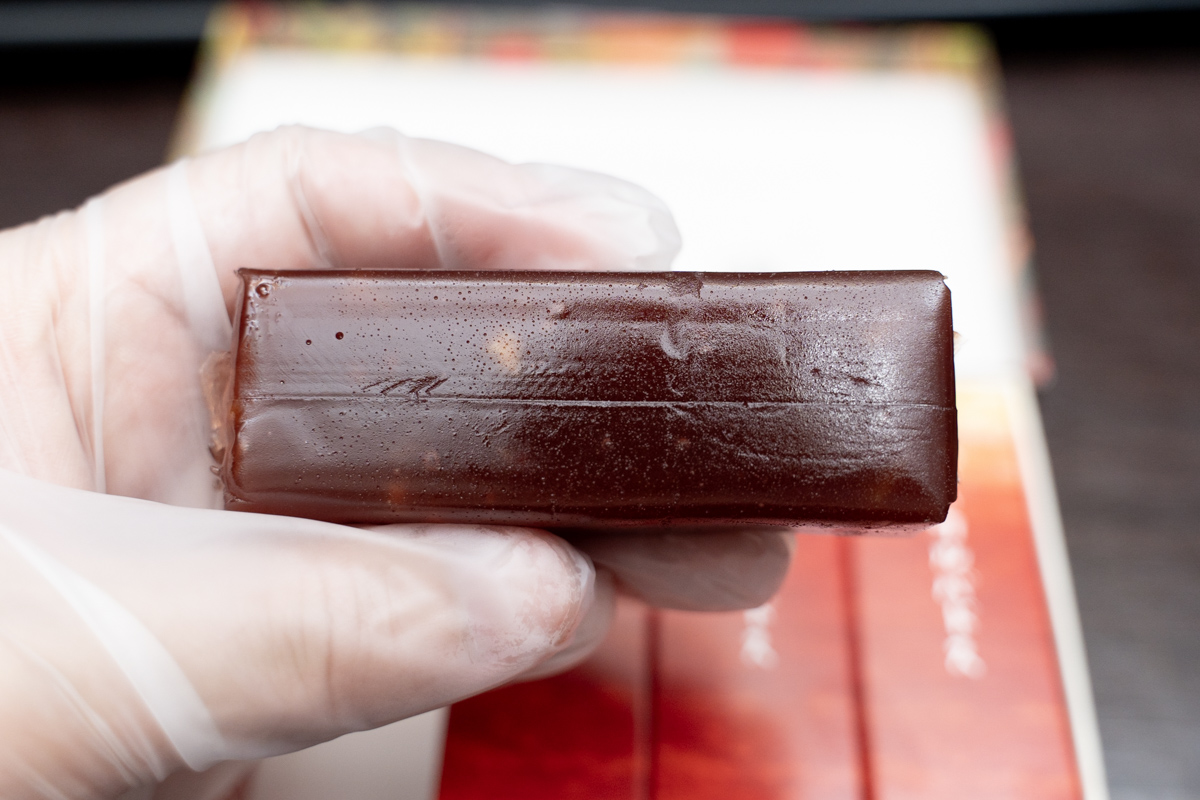そしてようやく羊羹にご対面。あー、なるほど。林檎の香りがする。