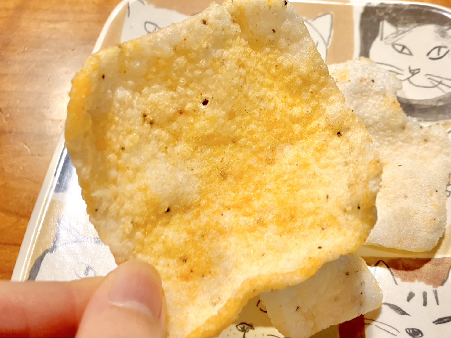 米菓というとさっぱりした味つけがされているイメージが強かったのだが、このうす揚では濃厚なチーズの香りと味がしっかりと感じられる。