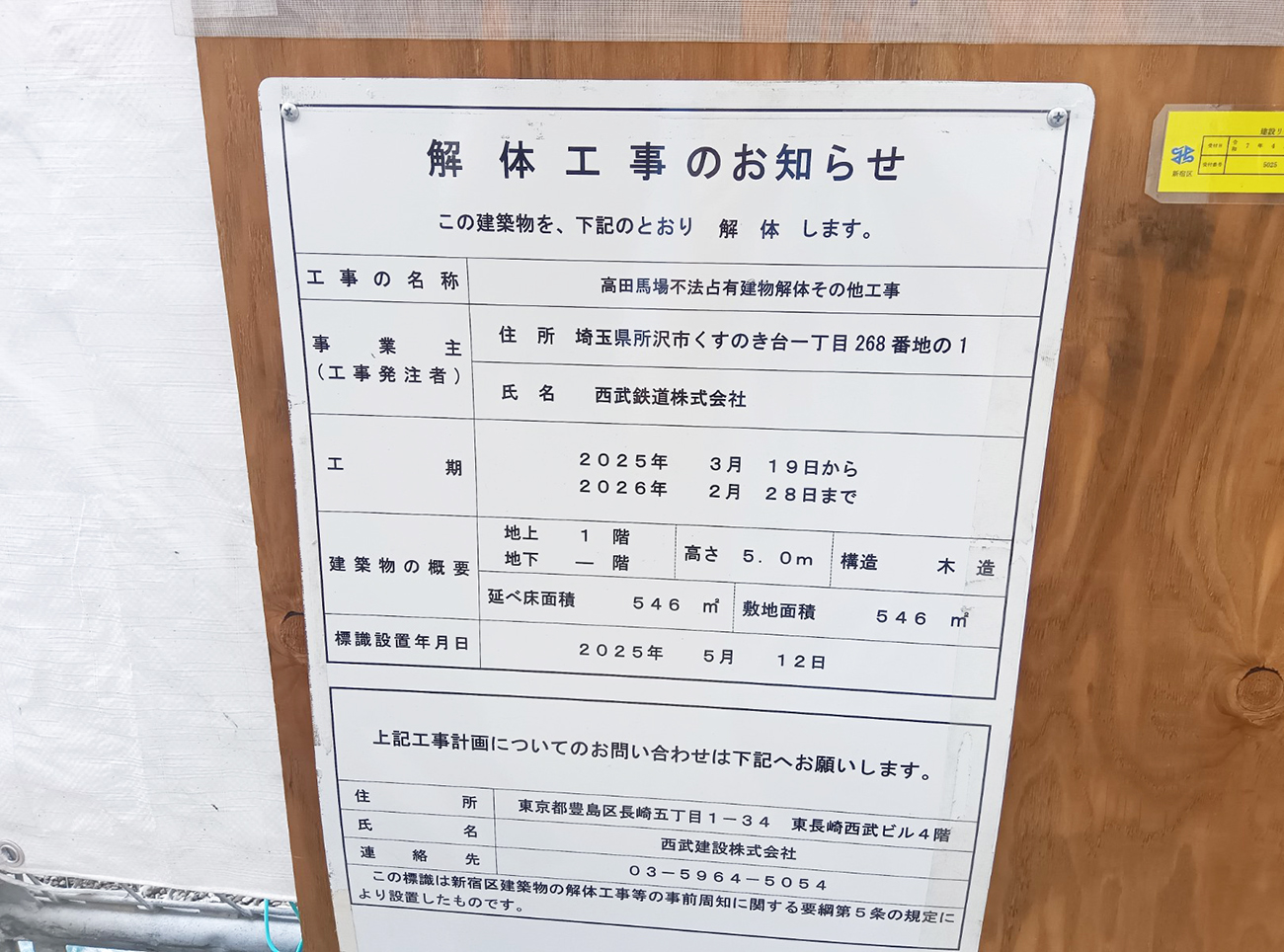 現在は撤去が完了しているが、現場に貼られた解体工事のお知らせの名称にも「高田馬場不法占有建物解体その他工事」と記載されている。高田馬場ってこういう昔の怪しさが残っていてもおかしくない雰囲気あるよなあ。