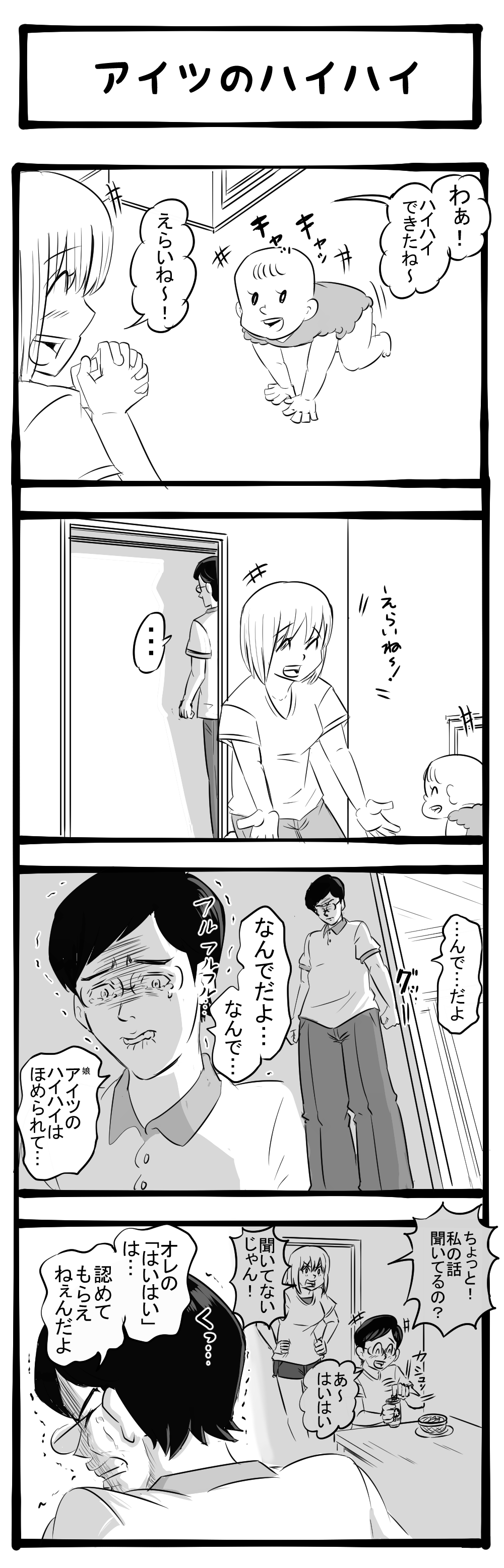 なんで娘は許されるんだ!? 妻の理不尽に肩を震わす父! 四コマサボタージュBYD第208回「アイツのハイハイ」