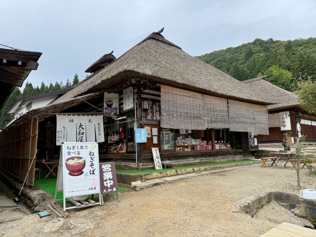 そんな歴史情緒ある街並みを散策しつつ、お目当てのネギそばを食べることに。大内宿の名店・大和屋は朝8時15分から営業していると聞いて朝イチでやってきた。人通りはまだ少なく、静かな宿場町を独占しているような贅沢な気分である。