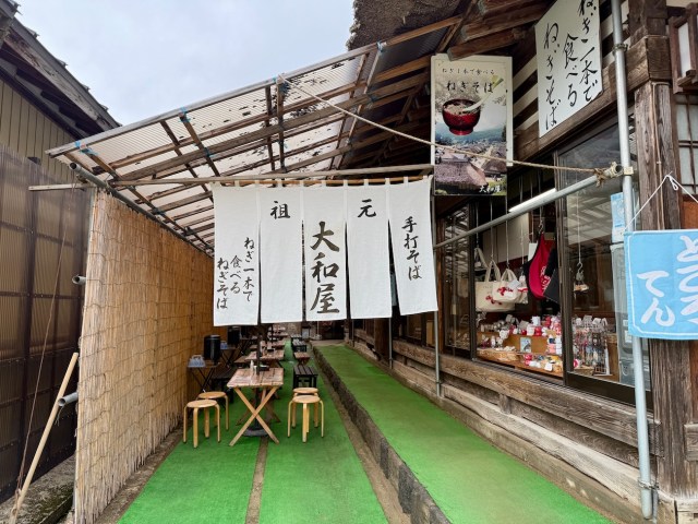 さて、大和屋もザ・江戸時代スタイルのそば屋だった。完全に『まんが日本昔ばなし』のビジュアル。そういえば、お土産屋さんの店主が「雪景色も最高ですよ」と言っていた。たしかに日本ならではの風情がさらに感じられるだろう。