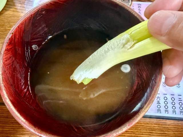 箸代わりのネギを薬味としてかじりながら食べていく。シャキッとした辛味と甘味が温かいつゆと合わさってウマい。てか、この “ワイルドスタイル” も美味しさを引き上げる要因な気がする。ただ、もちろん箸も用意されているので途中でチェンジしてもいいだろう。