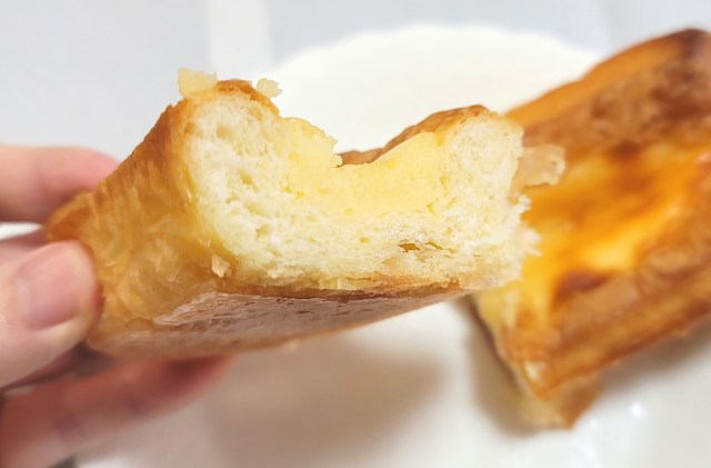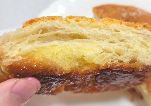 この時点で今回のファミマの一手が品質も伴っていることを重々理解していたが、本領はここからだった。続いて実食した「チーズケーキデニッシュ×クイニーアマン(税込198円)」が見せつけたのは、違和感のないグラデーションではなく、心地良いギャップだったのである。