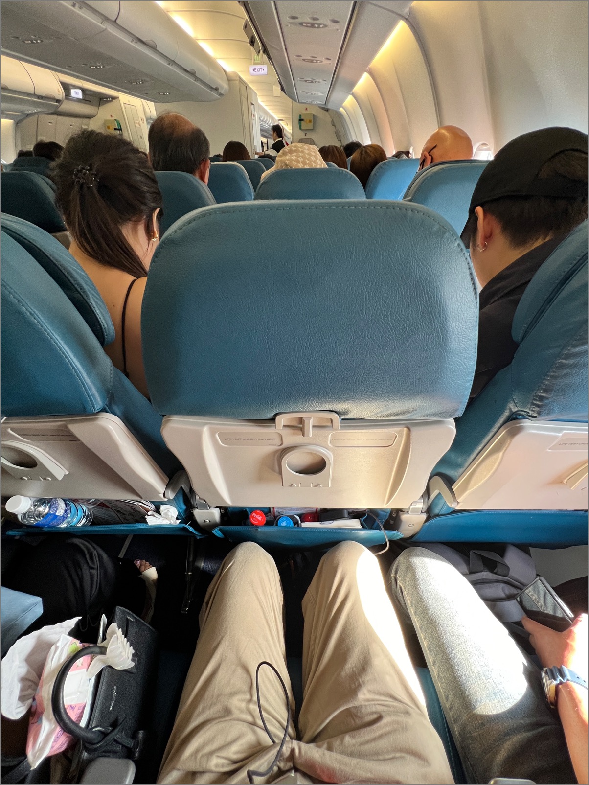 それでは無謀とも言える3泊4日の越境ラオス旅、LCC航空機3人席のど真ん中から……