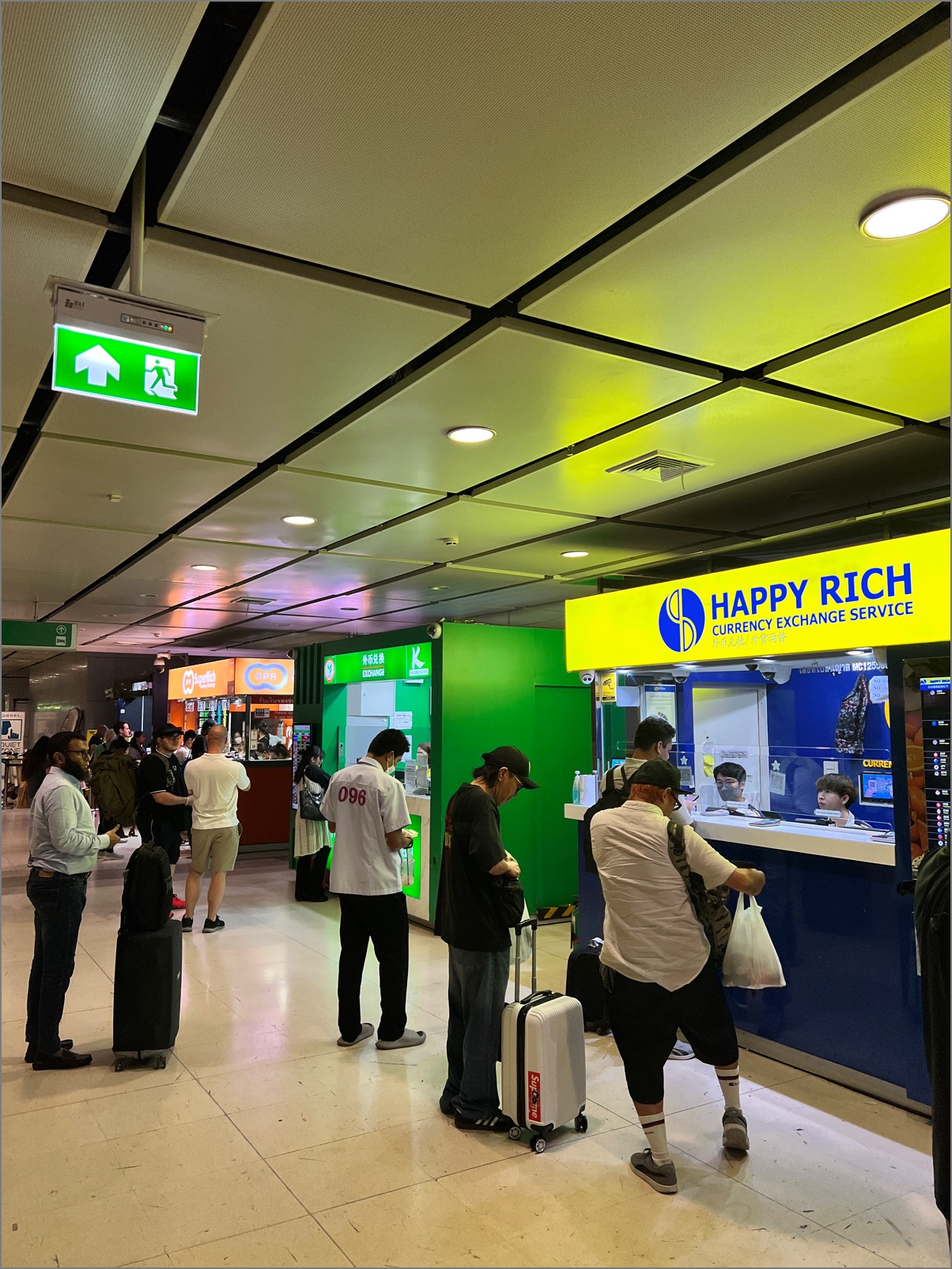 続いては両替。旅人にはすっかりお馴染み、スワンナプーム空港の地下にある両替スポットがレート良好なのでサクッと両替。私は「Super Rich」をよく使うが、「HAPPY RICH」など、並びの両替所も、そうレートは変わらない。