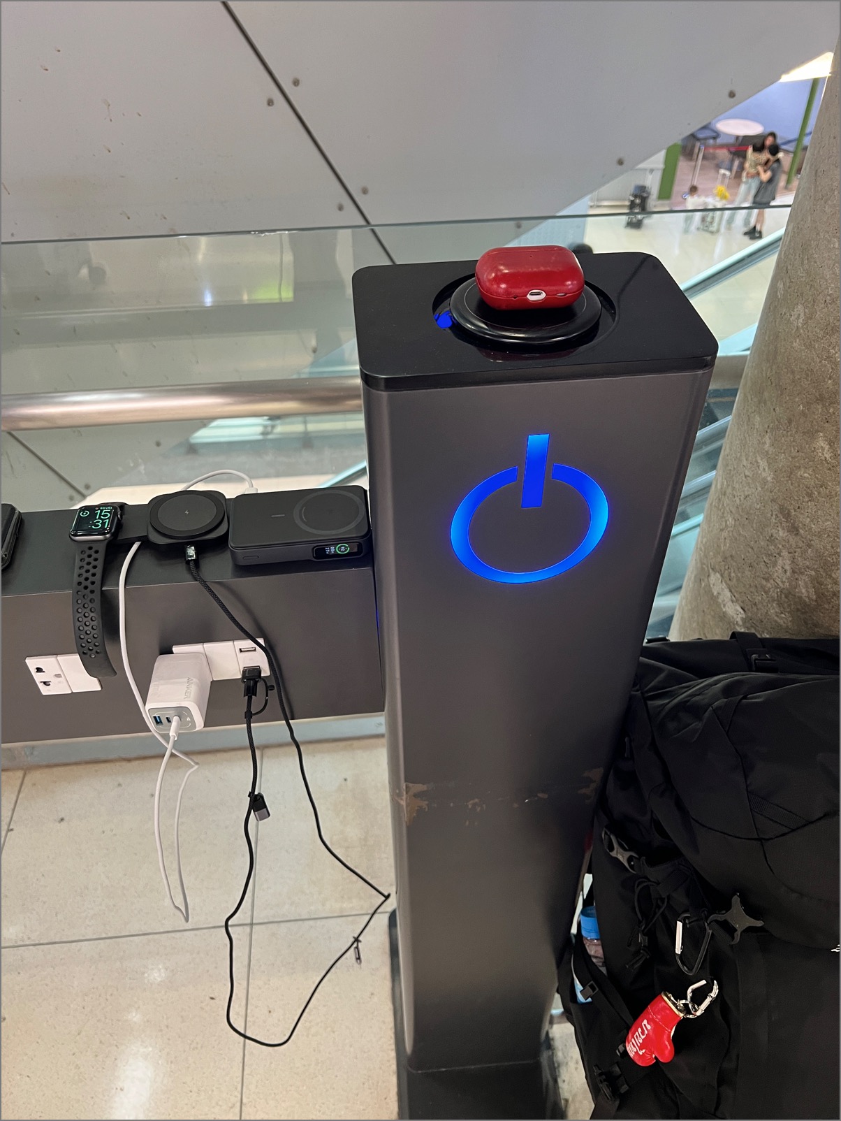 まず今回の旅、落ち着いて充電できるのがラオスに着いてからの1泊(安宿)しかないと予想されるので、まずはタイ・スワンナプーム空港内にある充電スポットにて、持っているガジェットのバッテリーを全てフルにしておいた。