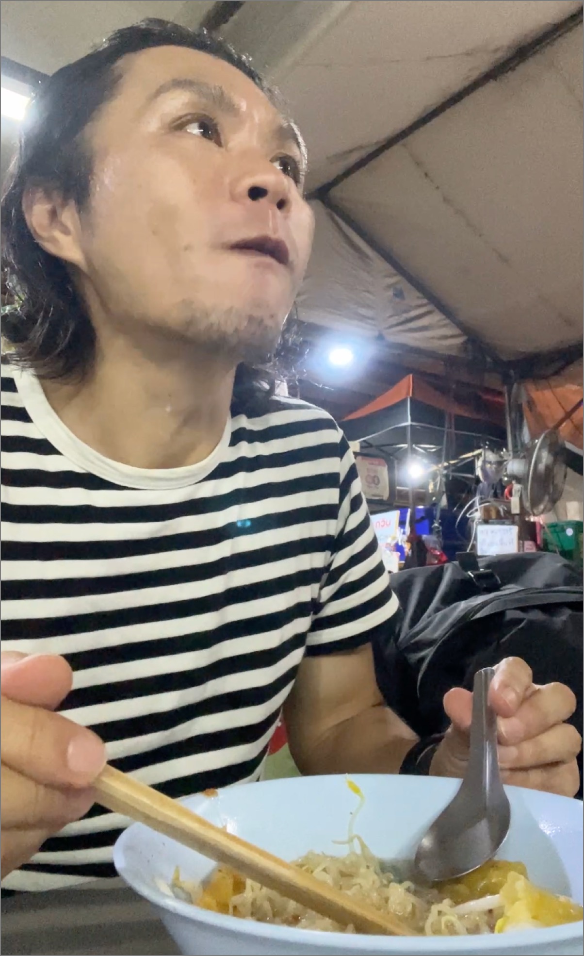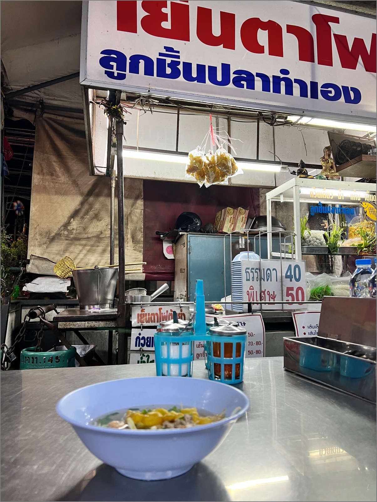 ここからは長い移動になるので、パワーをつけるべく腹ごしらえ(夜食)。ドンムアン駅周辺にあるタイラーメン屋さんで、