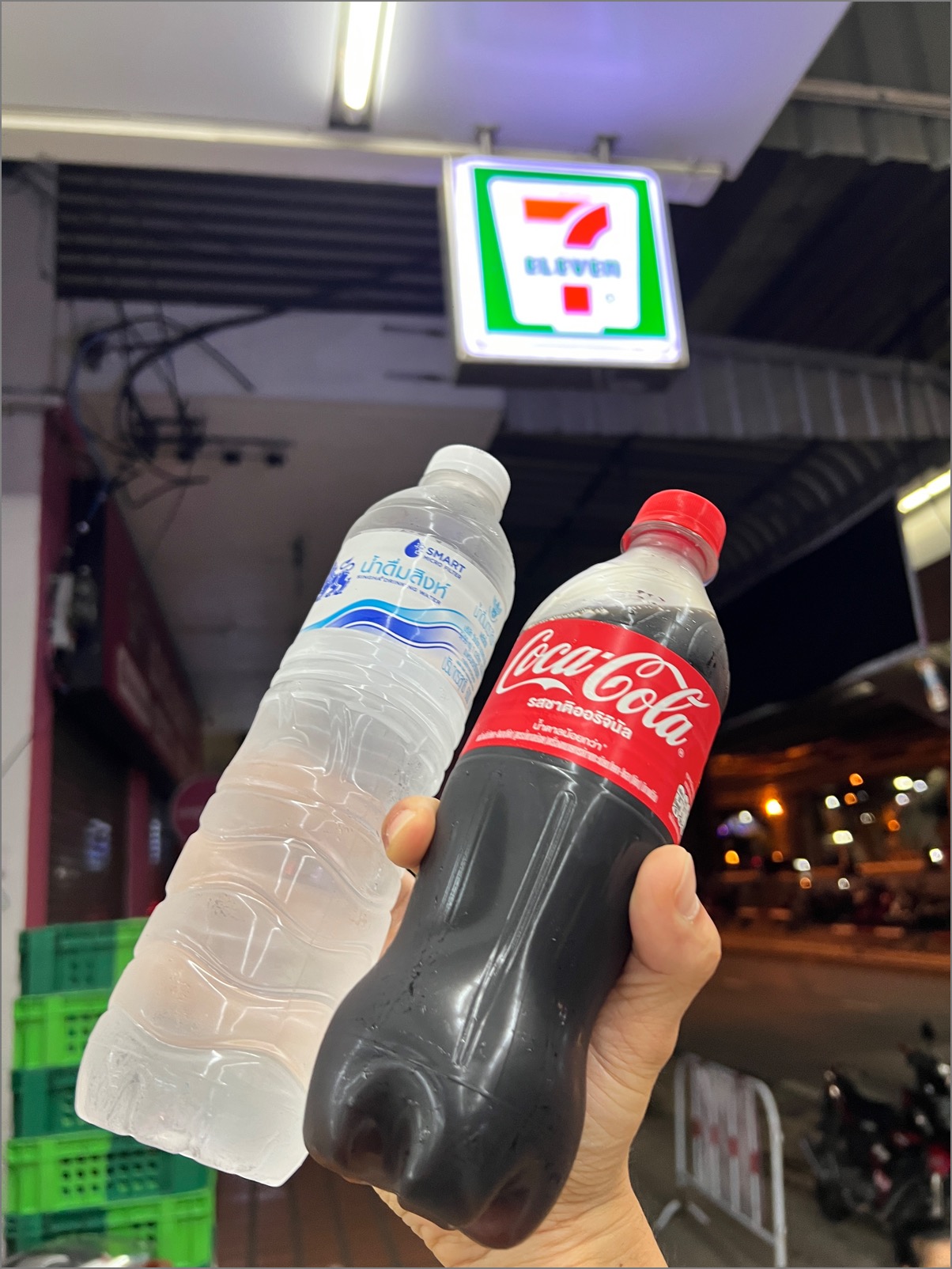 その後はセブンイレブンで、5万円旅恒例の「コーラと水」をセットで購入。これで移動の準備は整った。ちなみに価格はコーラが19バーツ(80円)、水が7バーツ(30円)だった。