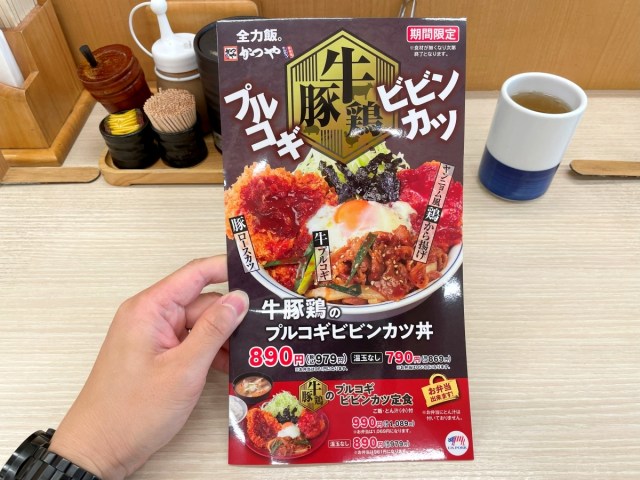 公開された画像を見た時からヤバそうな予感はしていた。本日2025年10月10日より期間限定で販売開始となった「かつや」新商品、その名も『牛豚鶏のプルコギビビンカツ丼』。