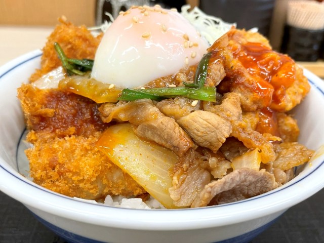 かつやの新商品「牛焼肉とロースカツの合い盛り丼」は100+100=200みたいな味! よく考えたら何も起きてないけど最高ォォォオオ!!
