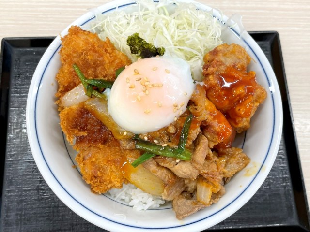 俺たちのかつや、「牛・豚・鶏のトリプルカツ丼」で早くも2025年の覇者に! カツ丼、牛丼、チキン南蛮を同時に摂取できるタイパの鬼!!