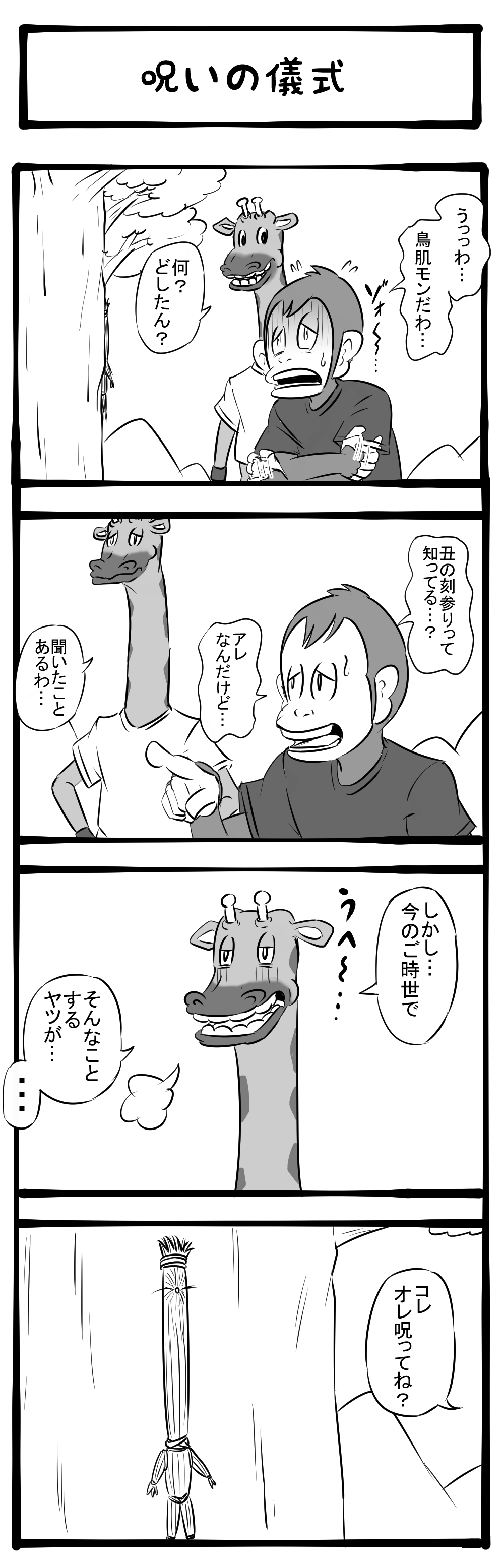 オレなんかした!? 木に打ちつけられた藁人形! ほのぼのアニマルタウン第64回「呪いの儀式」