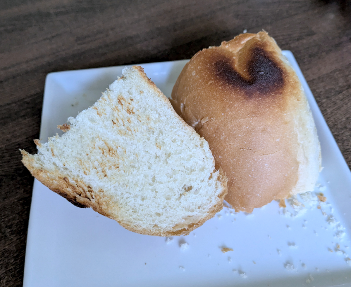 焼いて食べてみたところ、かすかな酸味があるのでカンパーニュに近いかな。そのまま焼いて食べてもいいし、スライスして軽く焼いてカナッペにしても良さそうだ。