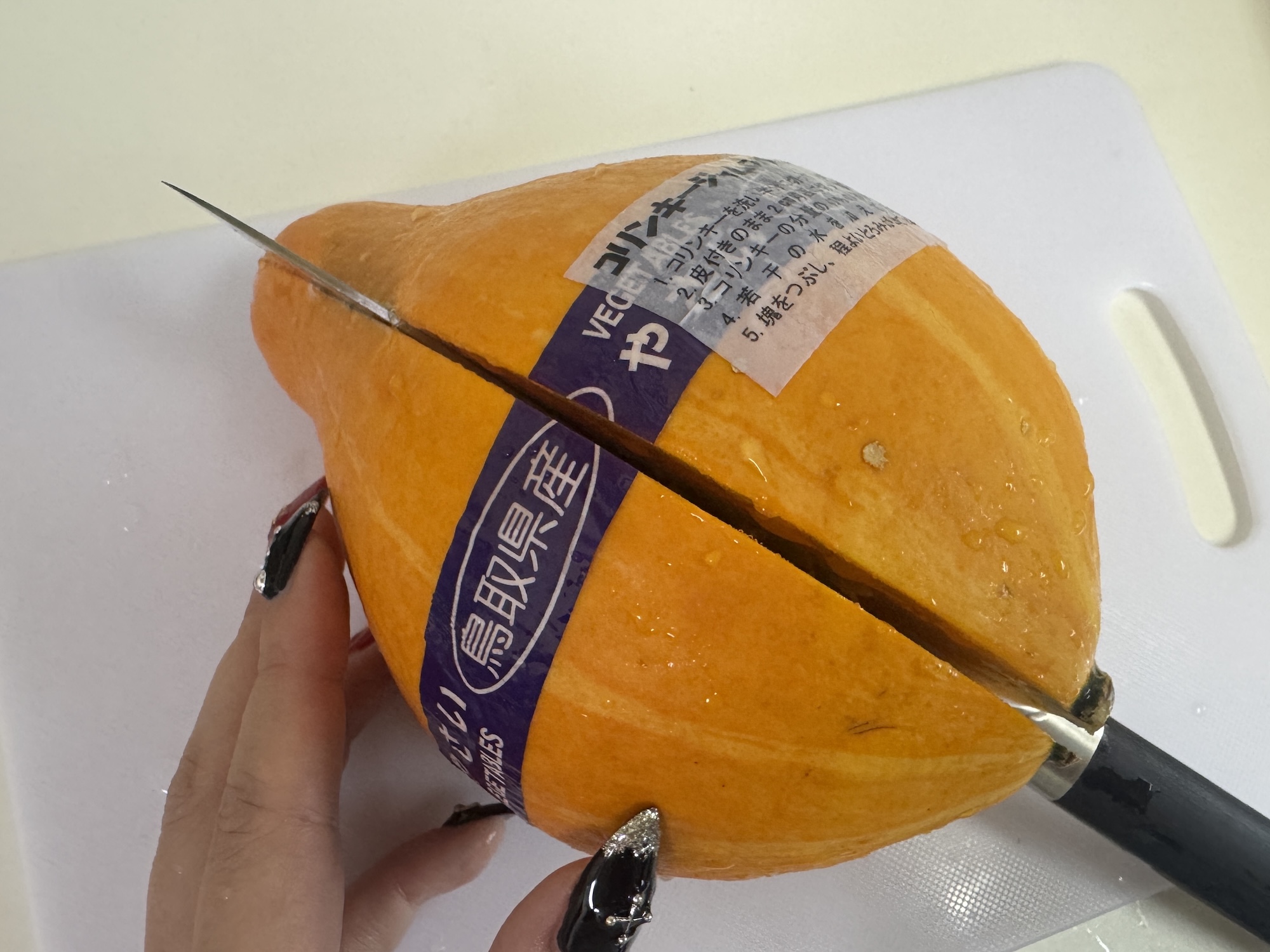 重いコリンキーをバッグにしのばせ、私は東京へと持ち帰った。コリンキーの表皮は、よくある緑色のカボチャほどの硬さはないものの、さりとてフルーツほど柔らかくもない。ある程度は雑に扱って大丈夫そうだ。