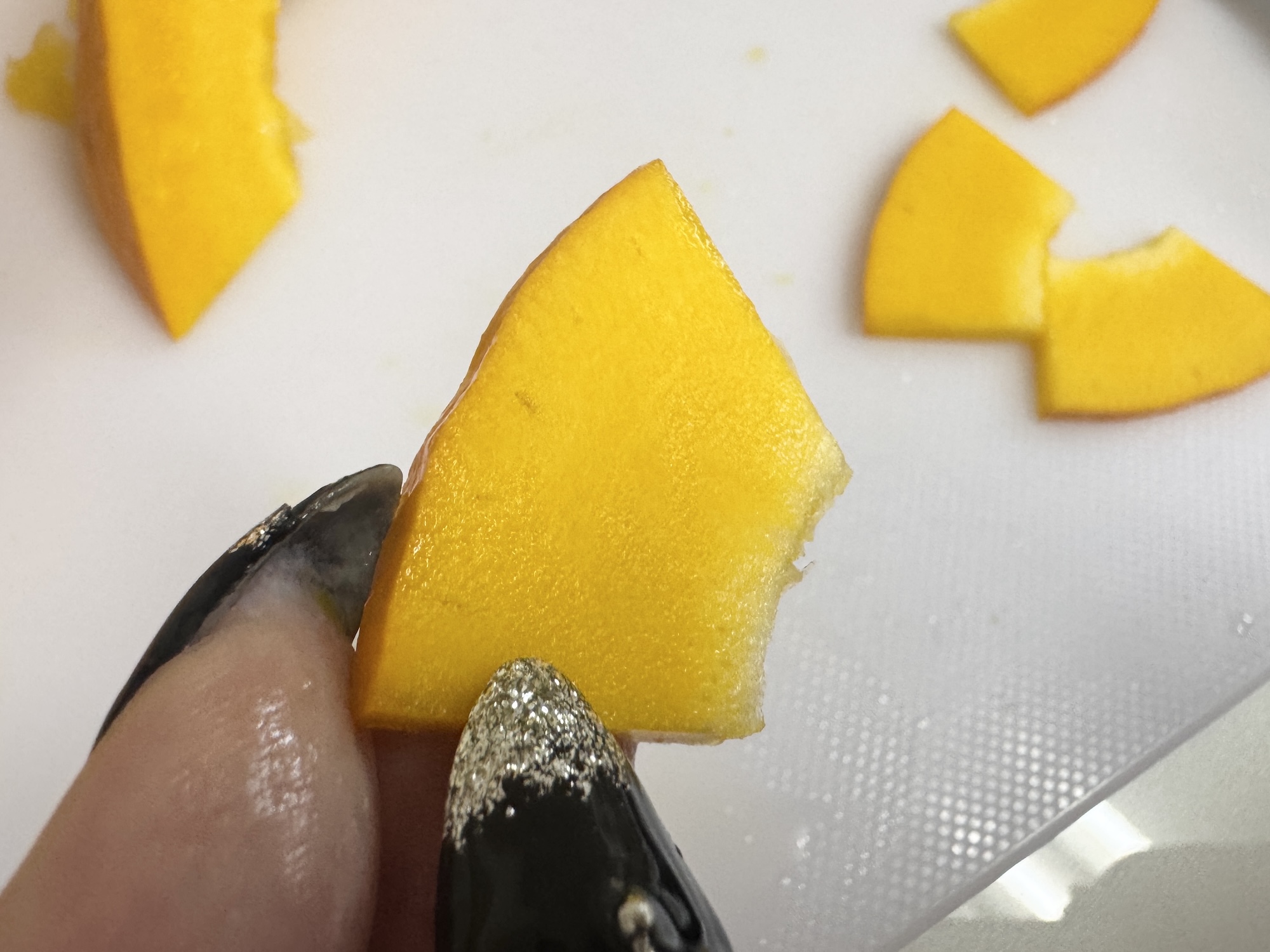 中でもオレンジ色のカボチャが大々的に販売されていたので、てっきりハロウィン用かと思ったら全然違った。『コリンキー』なるこのカボチャ、なんと “生食推奨のカボチャ” なのである!