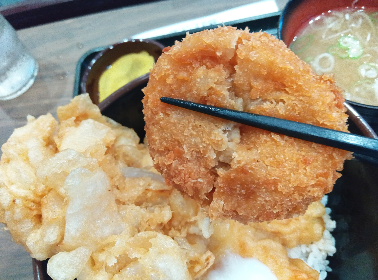 しぶそばのコロッケは基本普通のコロッケだけど、本家しぶそばだけ和歌山県日高町のご当地コロッケであるさばコロッケとなっている。このさばコロッケがオールスター天丼にも入っているのだ。オールスターは他店にもあれど、これはまさしく本家限定の一品。