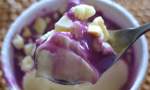 クッキーも含め、上から下までスプーンでざっとすくい味わうと、文句なしに美味しい。今までにない豪華さでありながら、落ち着く味でもある。個人的にはハーゲンの芋アイスにおいて、歴代ナンバーワンであると思う。