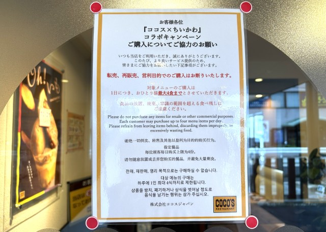 店頭の張り紙に加え、しっかりと対策をしてくれていることが分かる。『ちいかわ』ファンがちゃんと落ち着いて楽しめるように、そして転売対策を本気でやろうという姿勢が感じられた。