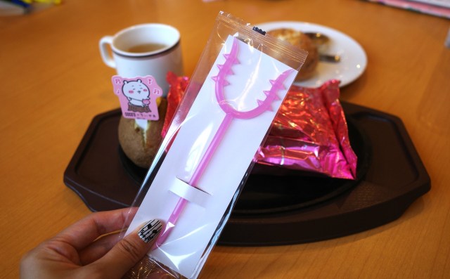 そしてお待ちかね、コラボグッズである。対象メニュー1品の注文につき、数量限定でオリジナルコラボグッズが1つプレゼント(ランダム)してもらえる。