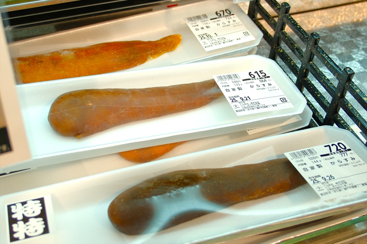 それもそのハズ。本来100gあたり4000円でも安いと思える高級食材、からすみ。ところがここ、おさかな市場では、