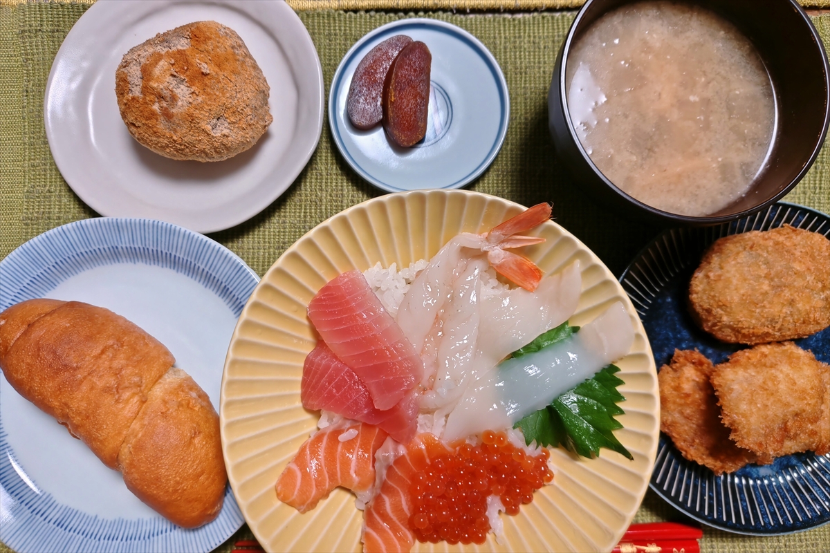 なぜかパンとご飯の両方がある(そして味噌汁は自前)というツッコミどころはあるが、この日の筆者の夕食は旅館の夕膳を思わせるほど贅沢に仕上がった。