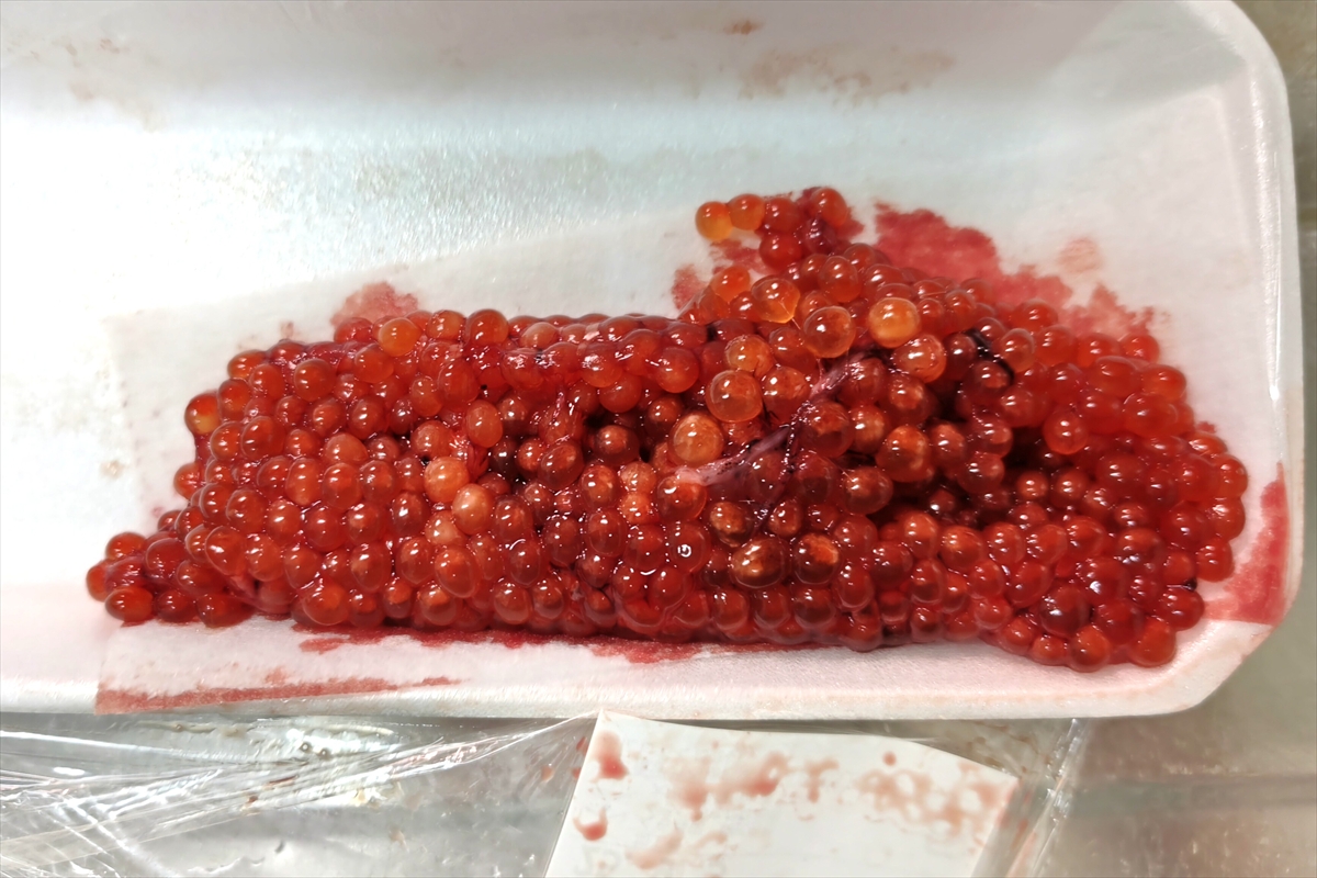 筆者が訪れた時に見つけたのは、いくらに加工される前のすじこやマグロのカマ。