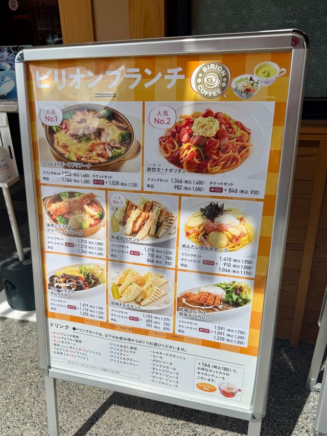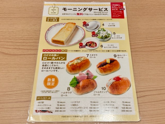 それなら興味あるぞ……ってことで店頭のメニューを確認してみると、まだモーニングサービス(11時まで)の時間帯。お得に休憩できそうなので立ち寄ってみることにした。