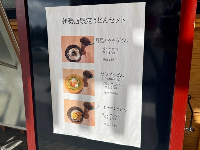 しかも面白いのは、店舗ごとに限定メニューがあること。伊勢外宮前店では「月見とろろうどん」や「おろしチキンうどん」といった、伊勢らしいうどん系メニューが用意されている。