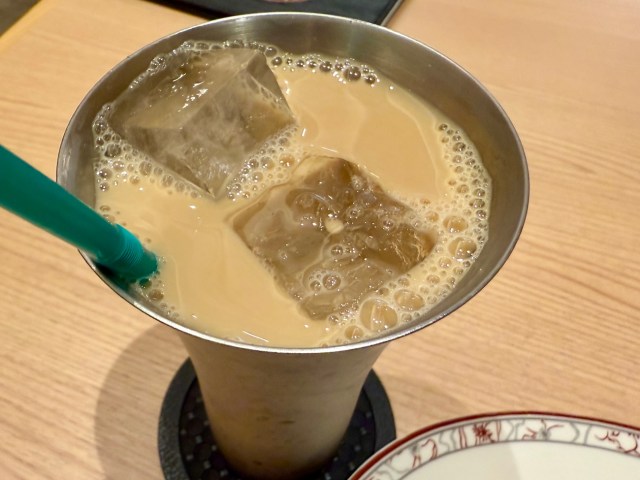 アイス珈琲オレは水出しアイスコーヒーにミルクを加えたもの。スッキリした口当たりにまろやかさがプラスされ、コーヒーの香りも苦味もしっかり味わえる。あんバターロールとの相性もなかなか良い。
