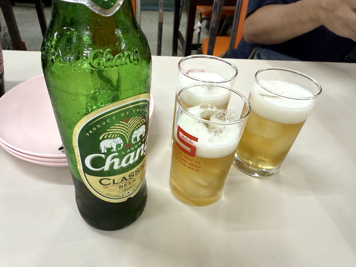 お店は壁の無い吹き抜け式になっており、現地感が最高! タイは基本暖かい国なので、こういうお店もいいですよね。このロケーションで飲んだチャンビールは格別でした。