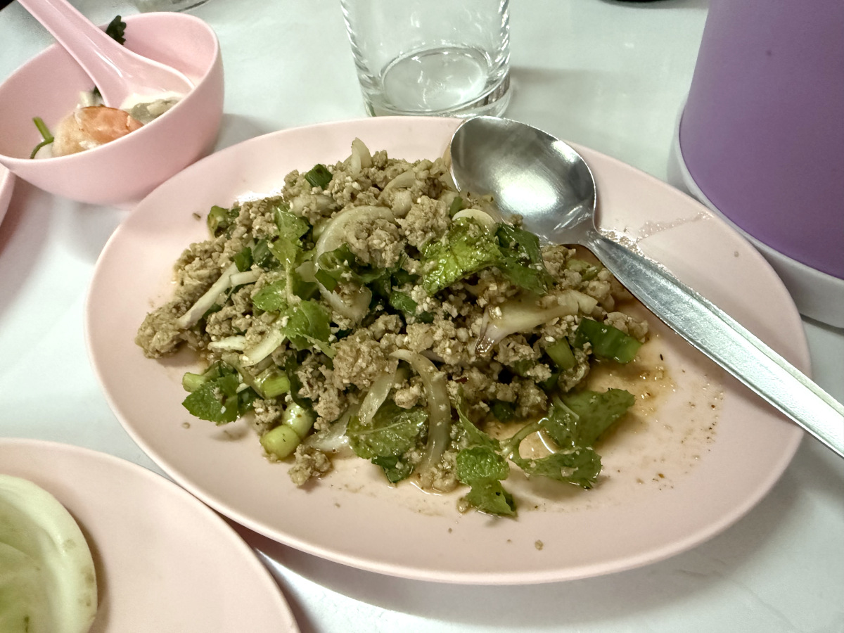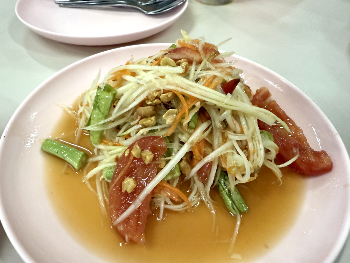 そしてこれがどれもこれもウマい! アローイ!! 青パパイヤのサラダ「ソムタム」は歯応えも味付けもマジで最高! 価格も90バーツ(約418円)なんてコスパも最高すぎです。