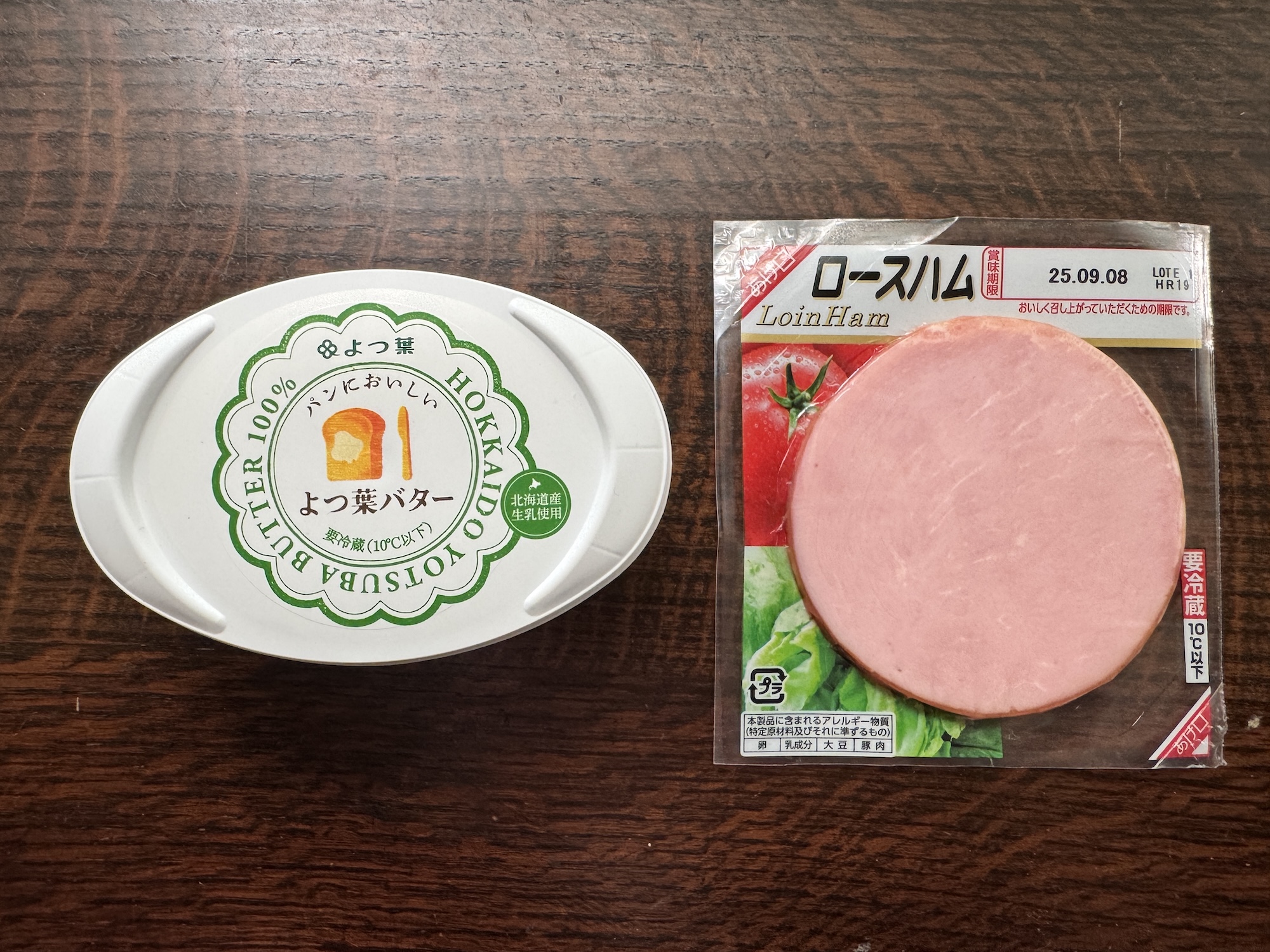 この段階で「ウマいわけがない」と思い込んでいた私は、ラ・ムーで売ってたバター(税込321円)とラ・ムーで売ってたハム(税込170円)を用意していた。バターとハムさえあれば、ほとんどのパンは5倍増しにウマくなるから。