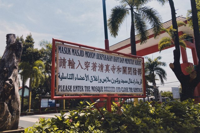 外には「モスクに入るにはきちんとした服装で陰部は隠してください」的な注意書きが書かれてる。中国語表記があるのが新鮮すぎる。