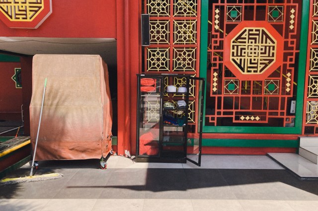 外からも見える通り、とてつもない中国感を漂わせる外見になっている。多角形な屋根に、鳥居を思わせるようなこの門。屋根にかかれてある「アッラー」の文字さえなければとてもモスクとは思えないような見た目。