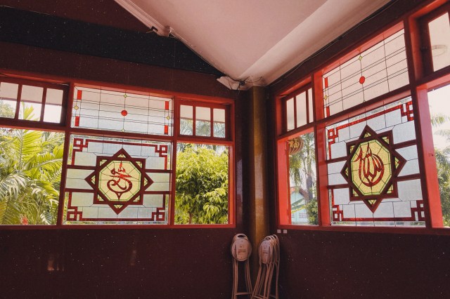 モスクにありがちなステンドグラス、これもまた中華風。