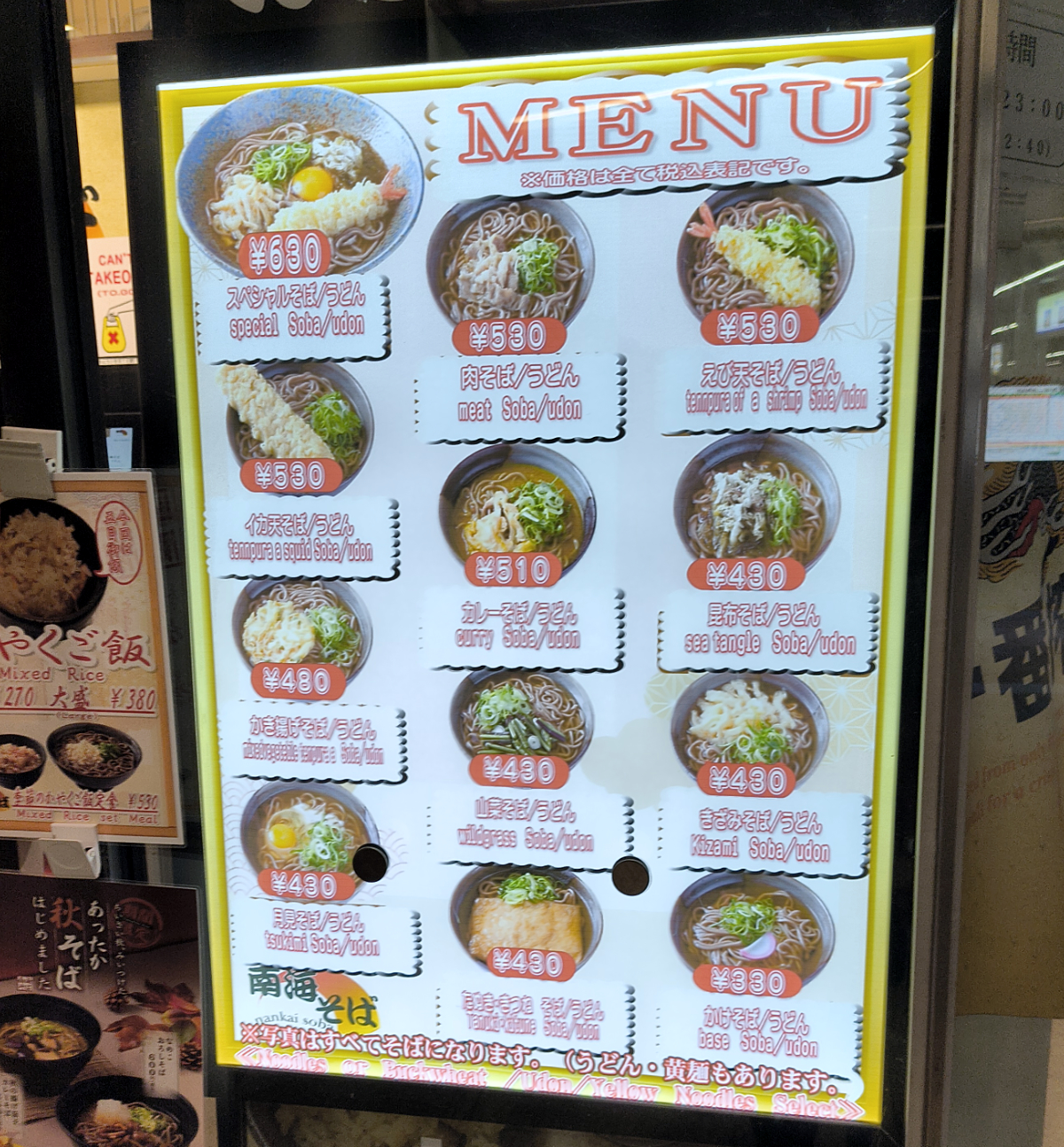昼食をとる時間がなく、乗り継ぎのタイミングで南海そばを発見して、取り急ぎそばをすすることとした。