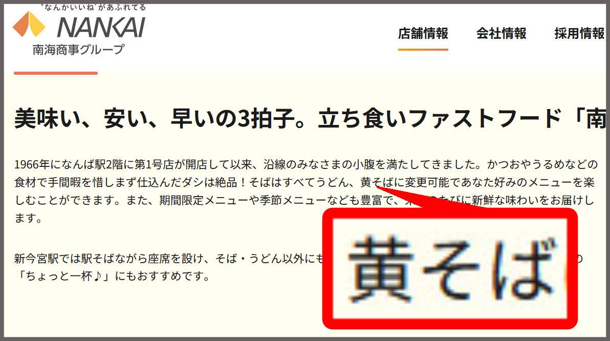 ところで……、帰京後に南海そばの公式サイトを見たところ、気になる文言が記載してあった。