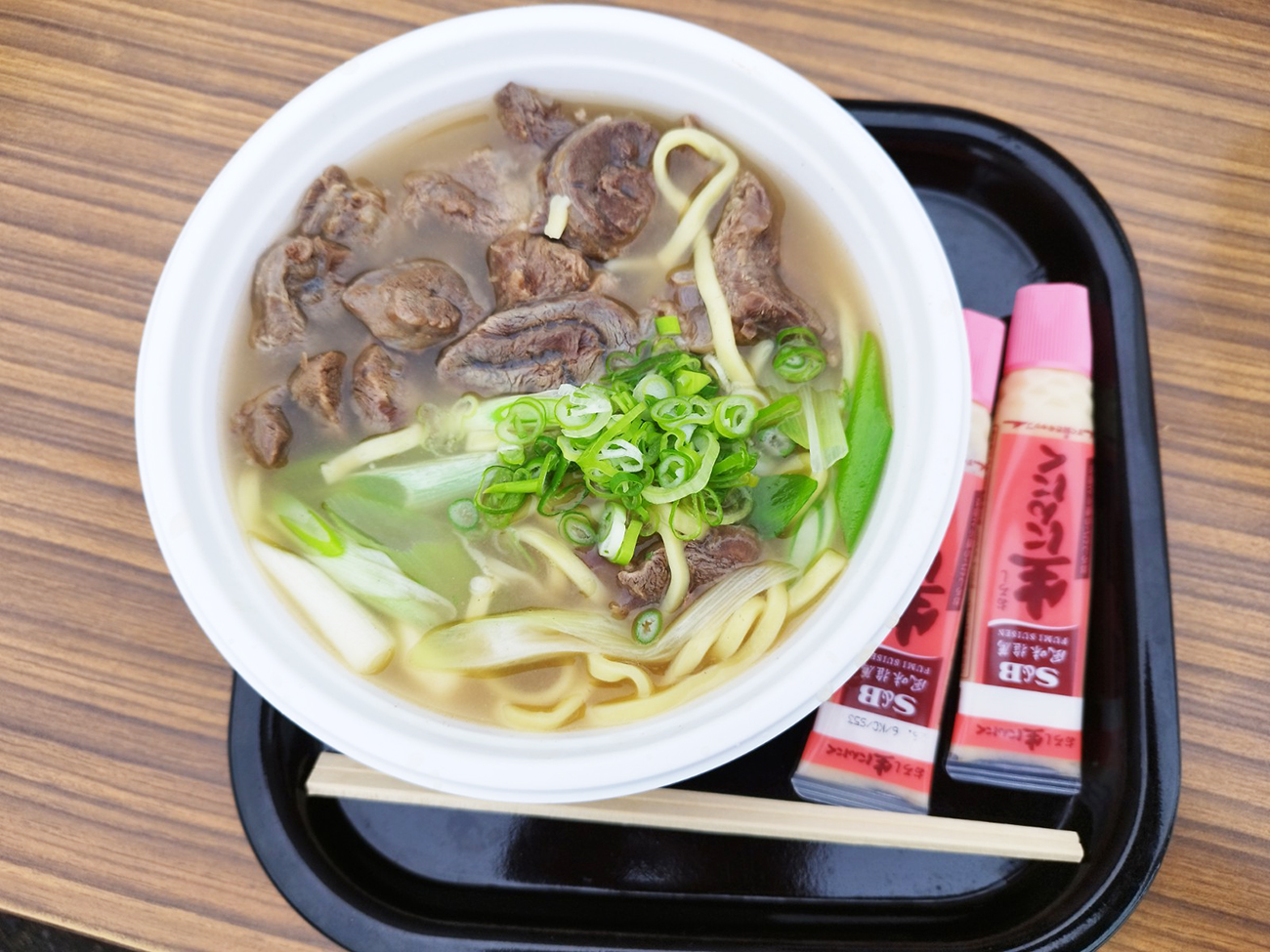 1つだけ異彩を放ちまくっている。さすが北海道……と思いきや、説明をよく読んでみると、このメニューだけ沖縄そばの麺を使っているという。どっちやねん!!