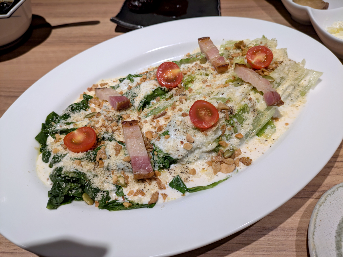 そして、上位ブランドを象徴するようなメニューがコレ、「焼シーザーサラダ」(税込1210円)だ。