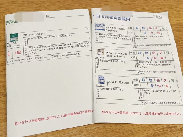 処方された薬は以下の4種類。