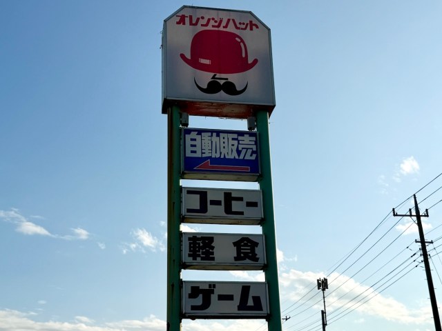 実を言うと、足利市へ向かう道中で「オレンジハット」なる渋い看板を発見して思わず立ち止まった次第。自動販売・コーヒー・軽食・ゲームが楽しめる……らしい。昭和の香りが漂いまくっている。
