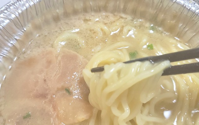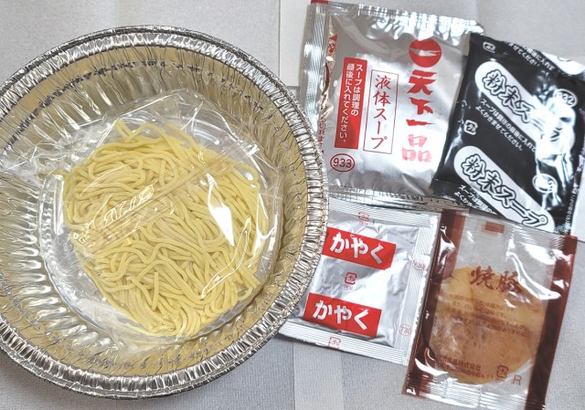 カップラーメンによく似た構成であり、調理方法もそれとさして変わらなかった。アルミ鍋で水400mlを沸騰させ、麺とチャーシュー、ネギとともに2分半煮込んだのち、最後に液体スープと粉末スープを入れて混ぜれば完成である。