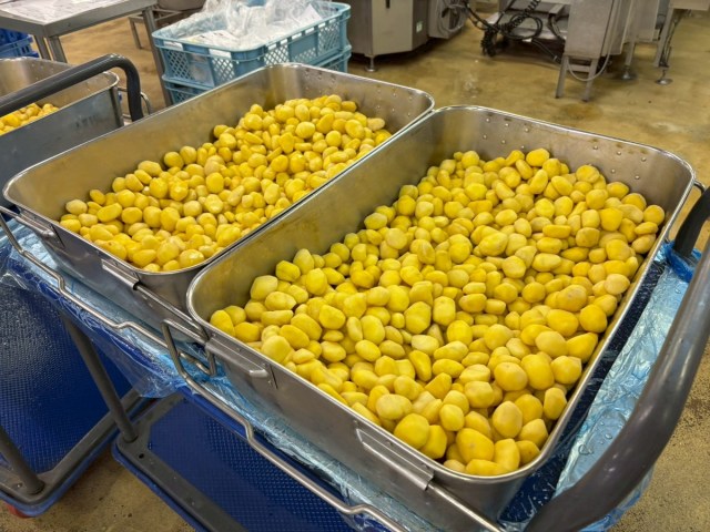 当初は韓国産が主流だったが、東日本大震災をきっかけに国産化を進め、2016年からは完全に自社加工へと切り替えた。現在では茨城・熊本・京都などの栗を扱い、それぞれに合わせて出汁や味付けを変えている。