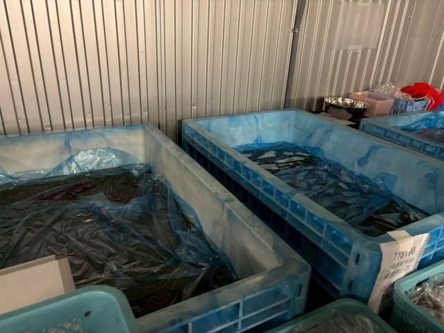 栗は入荷後、0〜10度の水に漬けて保存されており、腐敗や実の収縮を防いでいるという。