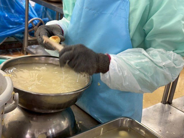 その後、栗は大きな鍋でボイルされる。残念ながら、この工程はすでに終了していたが、ここ見たかったな~。