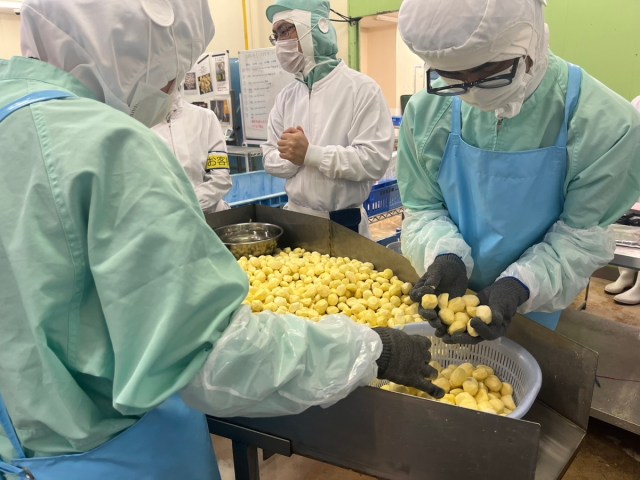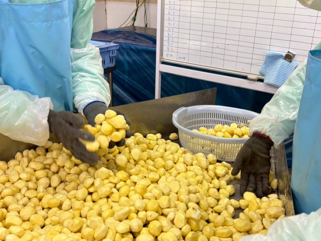 どうやら、生産性を上げるために始めた取り組みとのことで、導入後は1人あたり1kgほど多く剥けるようになったらしい。