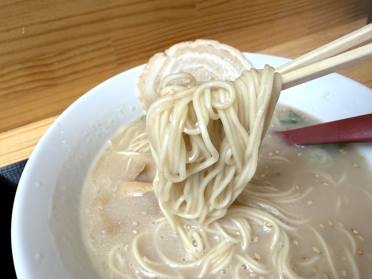 で、豚骨ラーメンの味そのものは「可もなく不可もなく」といったところ。甘めのスープは適度な粘度があり、500円だと思えば悪くない。ただこれ以上に美味しい豚骨ラーメンも世の中に多くあるハズだ。