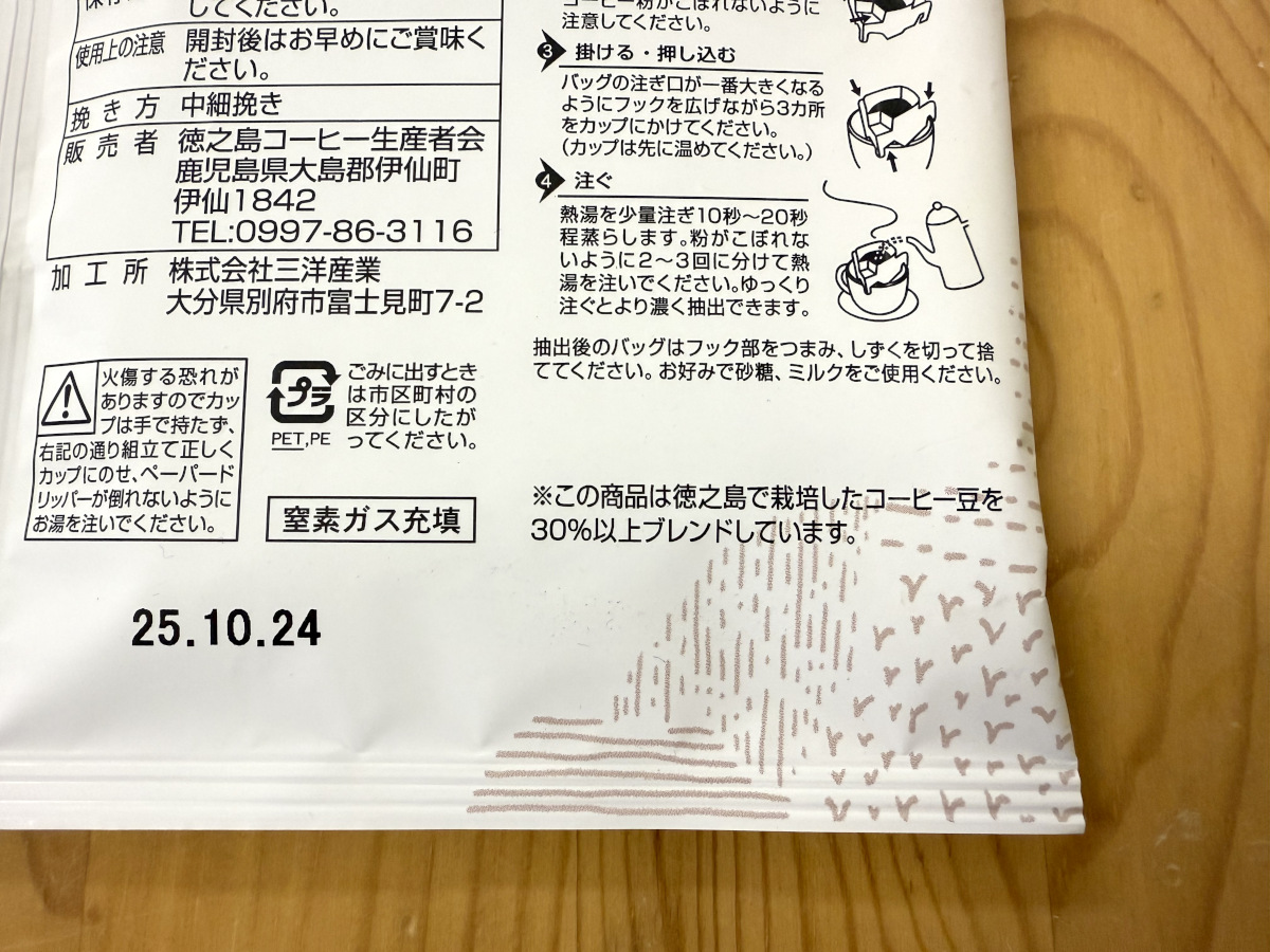 その希少な『徳之島コーヒー』を、代理店経由で「味の素AGF」からいただけることに。ドリップバッグ形式の『徳之島コーヒー』は1つ300円だが、その希少性を考えればむしろ安いと感じるのは私だけだろうか?