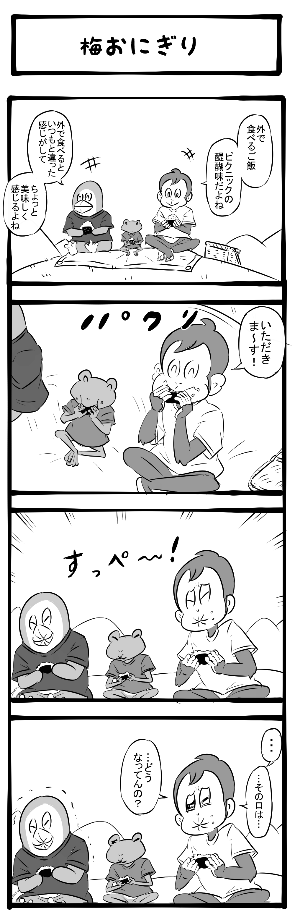酸っぱい…! ピクニックで食べたおにぎりの具! ほのぼのアニマルタウン第68回「梅おにぎり」